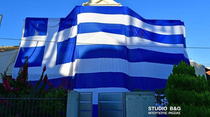 Με μία τεράστια Ελληνική σημαία κάλυψε το σπίτι του ένας κάτοικος της Νέας Κίου του Δήμου Άργους Μυκηνών στην Αργολίδα, Πέμπτη 25 Οκτωβρίου2018.