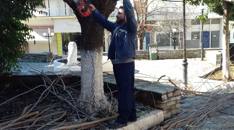 Νεμέα: «Εθελοντής» κλαδεύει τα δένδρα στην πλατεία Ηρώων