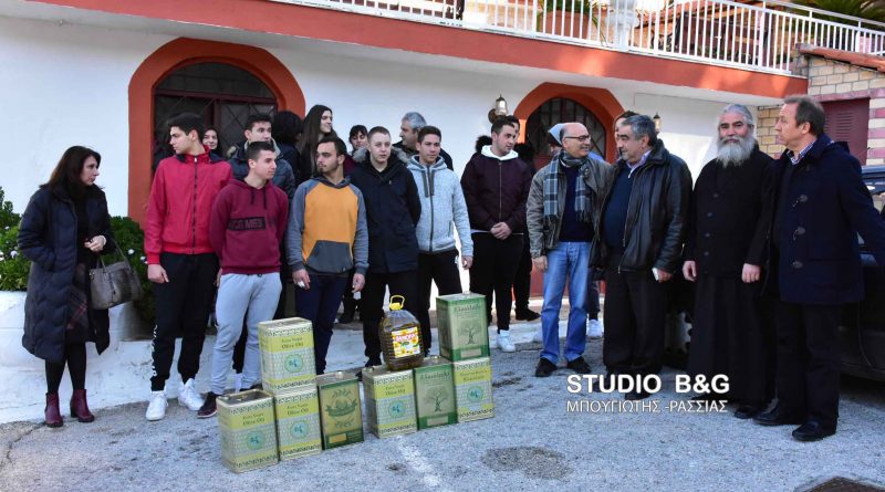Μαθητές του πρώτου ΕΠΑΛ Ναυπλίου επισκέφθηκαν τις εγκαταστάσεις του συσσιτίου του Ιερού ναού Ευαγγελίστριας στο Ναύπλιο και πρόσφεραν σημαντική ποσότητα ελαιολάδου.