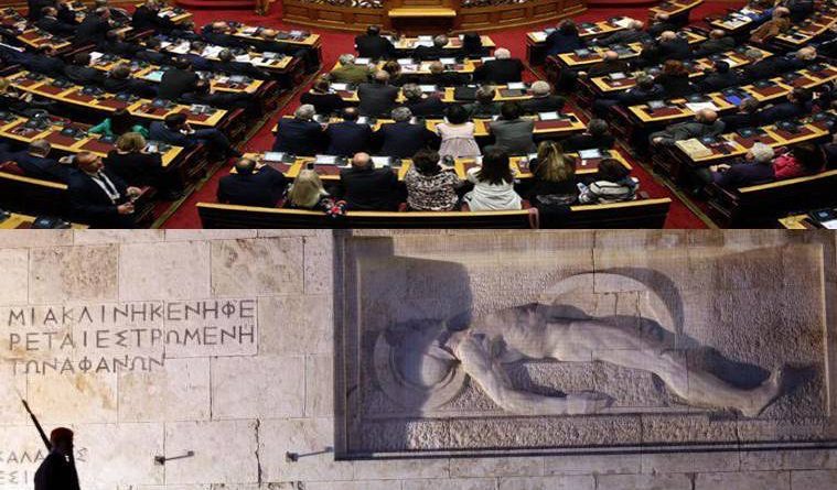 Κύριοι Βουλευτές, στο βάθος των θεμελίων του κτιρίου των εδράνων που αναπαυτικά θα κάθεστε, την στιγμή που θα κληθείτε σαν εκπρόσωποι του Έθνους να ψηφίσετε εάν συμφωνείτε με την συνθήκη των Πρεσπών, να θυμηθείτε ότι βρίσκεται το Μνημείο και το κενοτάφιο το αφιερωμένο