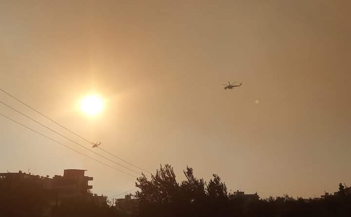 Η φωτιά στο Λουτράκι συνεχίζει να καίει ό,τι βρίσκει στο πέρασμά της, με την ατμόσφαιρα, όπως μαρτυρούν και οι εικόνες να παραμένει αποπνικτική.