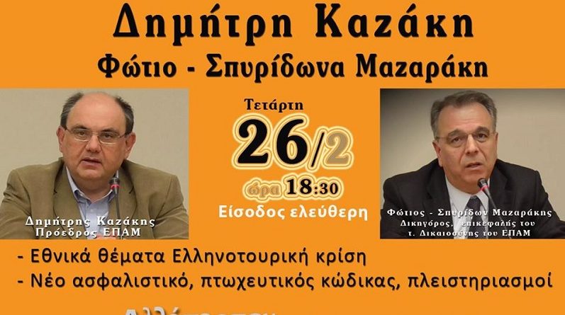 Ομιλητές: Δημήτρης Καζάκης, Πρόεδρος του ΕΠΑΜ