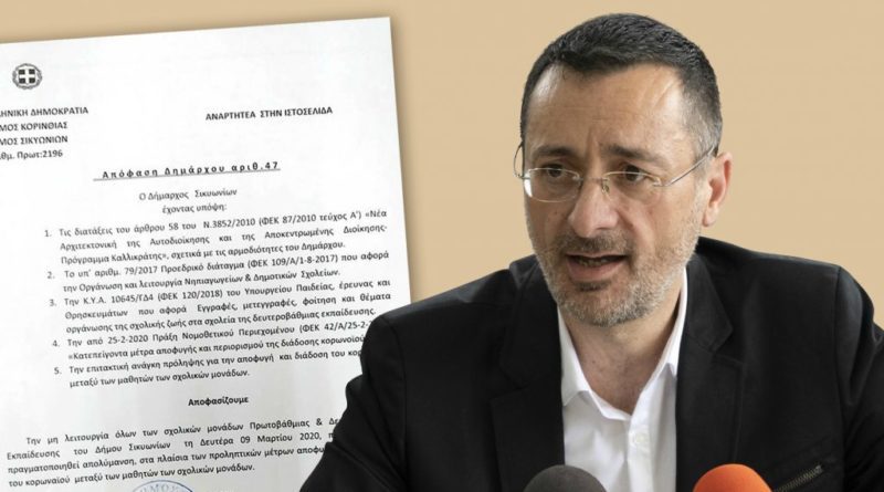 Δ. Σικυωνίων: Προληπτικά μέτρα για τον κορωνοϊό – Κλειστά τα σχολεία τη Δευτέρα