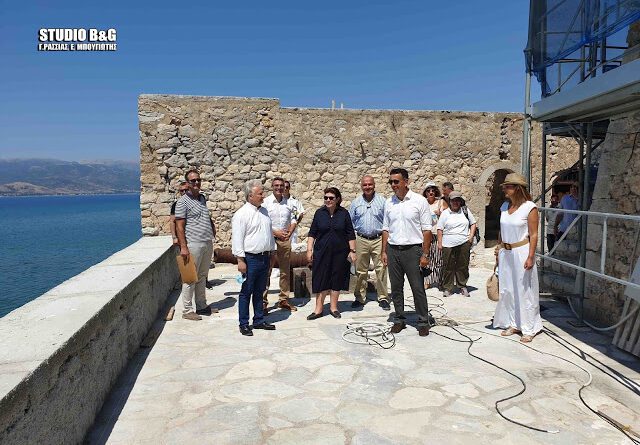 Η κυρία Μενδώνη συνοδευόμενη από την Προϊσταμένη της Εφορείας Αρχαιοτήτων Αργολίδας Άλκηστις Παπαδημητρίου και από στελέχη του υπουργείου και της Αρχαιολογικής Υπηρεσίας Αργολίδας επισκέφθηκαν το Μπούρτζι για να ενημερωθούν για την πορεία των έργων.