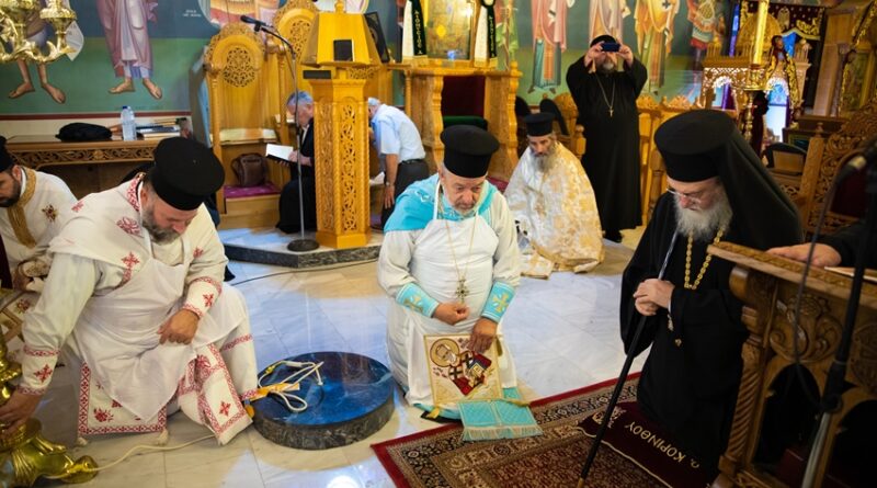 Την επομένη Σάββατο, 19 Σεπτεμβρίου 2020, Θεοφιλέστατος Επίσκοπος Κεγχρεών κ. Αγάπιος, Πρωτοσύγκελλος της Ι. Μητροπόλεως μας, πλαισιούμενος από τον Σεβασμιώτατο Μητροπολίτης μας κ. Διονύσιο, τέλεσε την Ιερά Ακολουθία των Εγκαινίων, της οποίας επακολούθησε η Δισαρχιερατική Θ. Λειτουργία προεξάρχοντος του σεπτού Ποιμενάρχου μας.