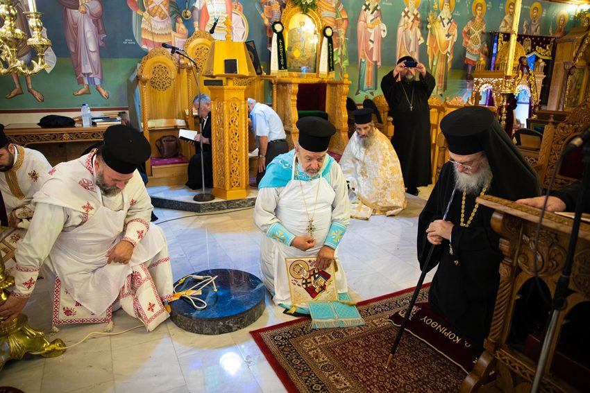 Την επομένη Σάββατο, 19 Σεπτεμβρίου 2020, Θεοφιλέστατος Επίσκοπος Κεγχρεών κ. Αγάπιος, Πρωτοσύγκελλος της Ι. Μητροπόλεως μας, πλαισιούμενος από τον Σεβασμιώτατο Μητροπολίτης μας κ. Διονύσιο, τέλεσε την Ιερά Ακολουθία των Εγκαινίων, της οποίας επακολούθησε η Δισαρχιερατική Θ. Λειτουργία προεξάρχοντος του σεπτού Ποιμενάρχου μας.