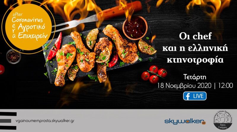 Την Τετάρτη, 18 Νοε 2020, στις 12.00, ο Κτηνοτροφικός Σύλλογος Αττικής «Άγιος Γεώργιος» οργανώνει δημόσια διαδικτυακή συζήτηση με θέμα την «Οι chefs και η Ελληνική Κτηνοτροφία», στην πλατφόρμα zoom την οποία όσοι θέλουν μπορούν να παρακολουθήσουν στο facebook και να υποβάλλουν γραπτές ερωτήσεις μέσω του προφίλ του Skywalker-Εργασία στην Ελλάδα ή απλά να την δουν στο site www.vgainoumemprosta.skywalker.gr.