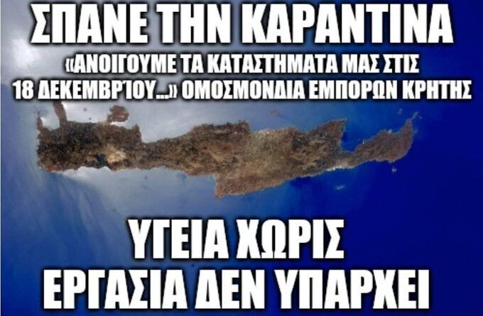 Οι Κρητικοί σπάνε την καραντίνα, στις 18 Δεκεμβρίου ανοίγουν τα μαγαζιά τους!