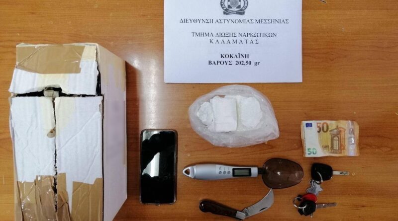 Ειδικότερα, ύστερα από κατάλληλη αξιολόγηση και αξιοποίηση πληροφοριών, ανωτέρω αστυνομικοί εντόπισαν την 37χρονη στον σταθμό Υπεραστικών Λεωφορείων Νομού Μεσσηνίας, να παραλαμβάνει δέμα, το οποίο περιείχε ποσότητα κοκαΐνης, συνολικού βάρους -202,5- γραμμαρίων και κατασχέθηκε.