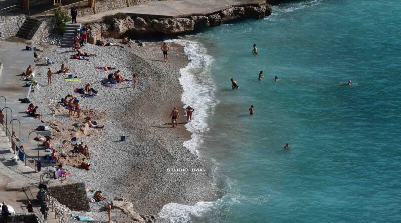 Γέμισε με κόσμο παραλία στο Ναύπλιο από την ασυνήθιστη ζέστη -VIDEO