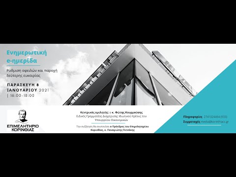 Την εκδήλωση διοργάνωσε το Επιμελητήριο Κορινθίας με αφορμή την πρόσκληση της Ειδικής Γραμματείας Διαχείρισης Ιδιωτικού Χρέους του Υπουργείου Οικονομικών.