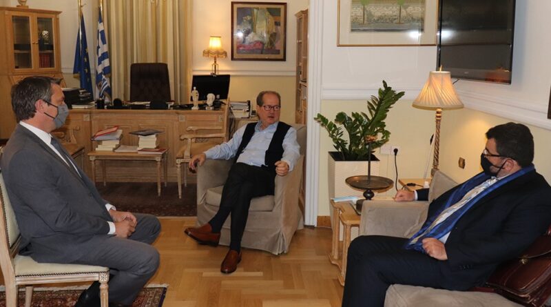 Ο Περιφερειάρχης Πελοποννήσου Παναγιώτης Νίκας συνάντησε σήμερα, Δευτέρα 26 Απριλίου, τον Βουλευτή Μεσσηνίας Περικλή Μαντά και τον Κοσμήτορα της Σχολής Γεωπονίας του Πανεπιστημίου Πελοποννήσου Δημήτρη Πετρόπουλο.