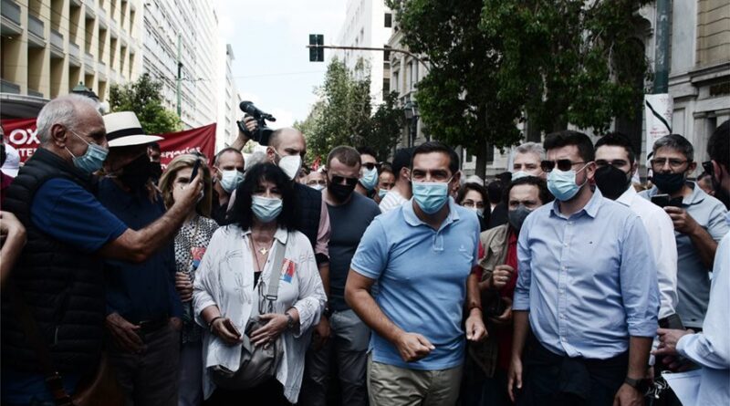 Στην απεργιακή κινητοποίηση, ο Αλέξης Τσίπρας και στελέχη του ΣΥΡΙΖΑ