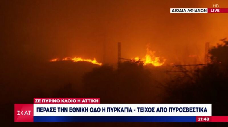 Αττική: Πέρασε την Εθνική Οδό η πυρκαγιά – Δραματικές εξελίξεις -VIDEO