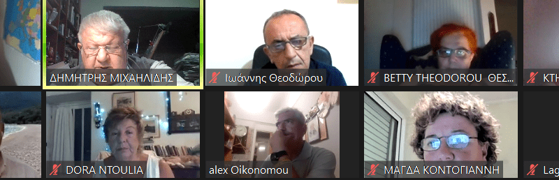 Εξαιρετική συζήτηση για την επόμενη μέρα μετά τις πυρκαγιές 2021, της ΣΥΝΕΡΓΑΤΙΚΗΣ ΚΟΙΝΩΝΙΑΣ στις 25/8/2021. Στην φωτό στιγμιότυπο με τους: Βασίλη Τακτικό, Δημήτρη Μιχαηλίδη, Γιάννη Θεοδώρου, Μπέττυ Θεοδώρου, Γρηγόρη Παπαπέτρου, Δώρα Ντούλια, Αλέξανδρος Οικονόμου, Μάγδα Κοντογιάννη & Γιάννη Λαγό.