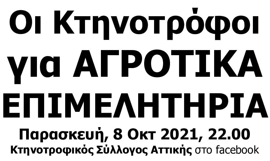 Η κα Μάγδα Κοντογιάννη, κτηνοτρόφος, 6932094231, γραμματέας του Κτηνοτροφικού Συλλόγου Περιφέρειας Αττικής, είπε: Ελπίζουμε ότι η παρουσίαση των συνοπτικών αξόνων Στρατηγικού Σχεδίου δεν θα απορροφήσουν όλο τον αξιοποιήσιμο χρόνο ανθρώπινης αντοχής για συμμετοχή στην εκδήλωση και θα έχουμε την ευκαιρία να εκθέσουμε τις απόψεις της νόμιμα και τυπικά λειτουργούσας, οργάνωσής μας, με χώρο ευθύνης όλη την Αττική. Ο Κτηνοτροφικός Σύλλογος Περιφέρειας Αττικής έχει κάνει 150 περίπου δημόσιες διαδικτυακές συζητήσεις σχεδόν για όλο το φάσμα των θεμάτων που απασχολούν την αγροτική επιχειρηματικότητα στην ύπαιθρο της αττικής και ειδικότερα στην περιαστική κτηνοτροφία, εδώ και ενάμιση χρόνο. Στις 8 Οκτ 2021, 22.00 συζητάμε για τα Αγροτικά Επιμελητήρια. Μάλιστα στις 15 Οκτ 2021, 20.00, θα γιορτάσουμε διαδικτυακά την ΠΑΓΚΟΣΜΙΑ ΗΜΕΡΑ της ΑΓΡΟΤΙΣΣΑΣ.