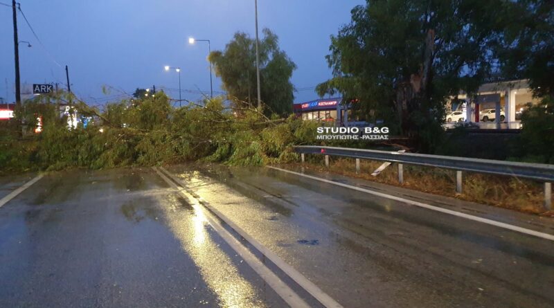 Μεγάλο δένδρο έπεσε στον δρόμο Άργους – Ναυπλίου στο ύψος της Δαλαμανάρας και έκλεισαν και τα δυο ρεύματα κυκλοφορίας.