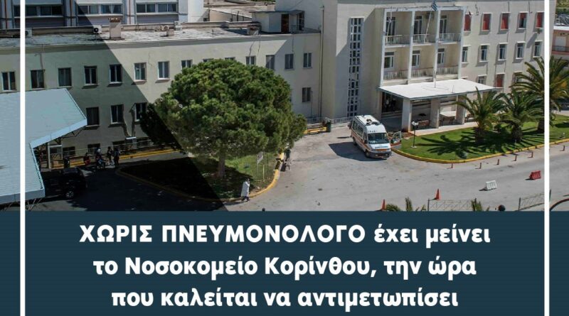 - Πόσο είναι το ιατρικό και νοσηλευτικό δυναμικό του Νοσοκομείου, που καλείται σε αυτές τις αντίξοες, από κάθε άποψη, συνθήκες να προασπίσει τη δημόσια υγεία και να σώσει τις ζωές συνανθρώπων μας. Γιατί γνωρίζουμε όλοι καλά ότι το Νοσοκομείο Κορίνθου έχει μείνει –για παράδειγμα- χωρίς πνευμονολόγο (!), την ώρα που καλείται να αντιμετωπίσει την πανδημία ενός ιού που προσβάλει το αναπνευστικό σύστημα. Αυτό σημαίνει ότι ένας ασθενής με λοίμωξη αναπνευστικού θα πρέπει πλέον να παραδώσει τον εαυτό του σε ιδιωτικό ιατρείο πνευμονολόγου, να πάρει γνωμάτευση και εκτίμηση της κατάστασής του και να επιστρέψει ( ; ) στο νοσηλευτικό ίδρυμα για την περαιτέρω θεραπεία του! Όλα αυτά, δε, την ίδια ώρα που –σύμφωνα με καταγγελίες- ο τελευταίος πνευμονολόγος του Νοσοκομείου ενημέρωνε ο ίδιος τους ασθενείς ότι θα πρέπει στο εξής να τον επισκέπτονται στο ιδιωτικό ιατρείο του.