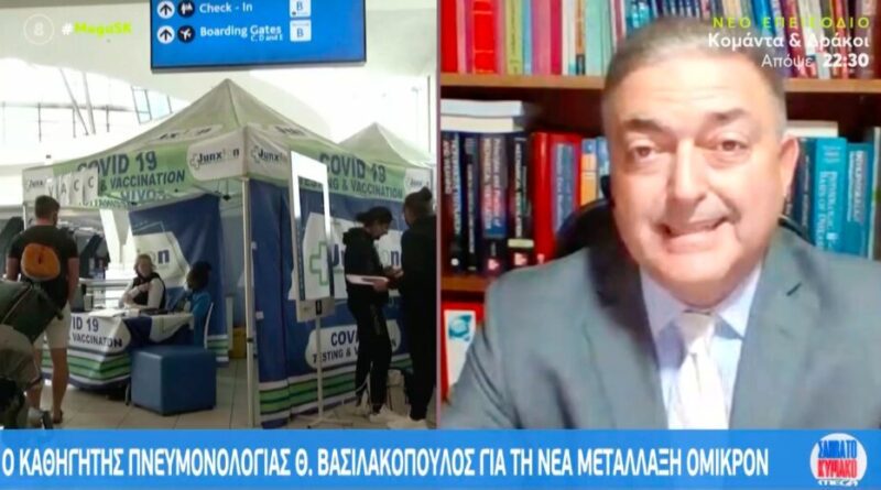 Ο Θεόδωρος Βασιλακόπουλος, καθηγητής Πνευμονολογίας, τόνισε πως η μετάλλαξη Όμικρον έχει ήδη απλώσει τα δίχτυα της και καλεί τον κόσμο να εμβολιαστεί προκειμένου να αναχαιτιστεί η πανδημία.