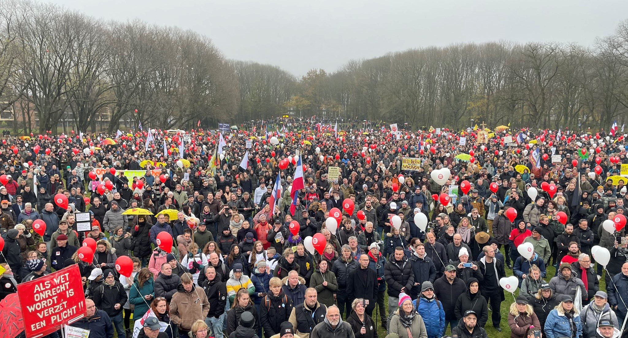 Το πλήθος διαδήλωσε στους δρόμους της πόλης κρατώντας πανό με συνθήματα όπως: Ιατρική Ελευθερία Τώρα! αλλά και σημαίες της Ολλανδίας.
