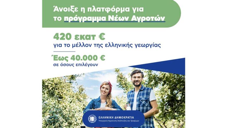 Πρόγραμμα Νέων Αγροτών: Παράταση για όσους έχουν κωδικό υποβολής αίτησης