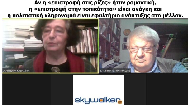 Αν η «επιστροφή στις ρίζες» ήταν ρομαντική, η «επιστροφή στην τοπικότητα-locality» είναι ανάγκη και ο λαϊκός πολιτισμός, η πολιτιστική κληρονομιά (άυλη και υλική), είναι εφαλτήριο ανάπτυξης για ένα καλύτερο μέλλον. Μάλιστα, εξ επαγγέλματος, οι ΦΡΟΝΤΙΣΤΕΣ του περιβάλλοντος (φυσικού, κοινωνικού, τεχνολογικού, πολιτιστικού, οικονομικού κλπ) είναι οι κάτοικοι την υπαίθρου, οι αγρότες, που μέχρι σήμερα το φρόντιζαν.