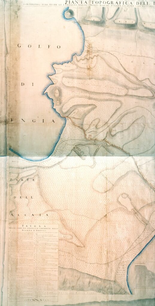 From the plans drawn up by the Venetians around the year 1687, it seems that one more trench was opened up, beyond the two main ones. It was approximately perpendicular to the central trough of the Isthmus, and constituted the eastern extension of the great ditch, its length being the greatest of all (see Figs. 2, 3, 4). These cuttings did not begin at the shore, but at some distance from it.