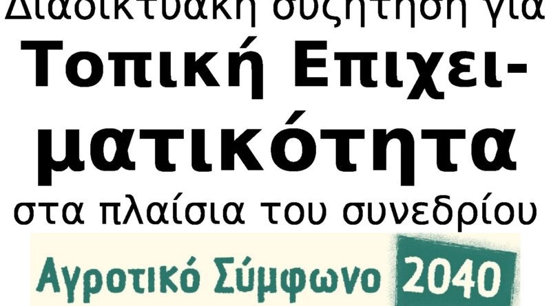 Τις παραπάνω σκέψεις και πολλές περισσότερες θα προσπαθήσουν να προσεγγίσουν οι συμμετέχοντες στην δημόσια διαδικτυακή συζήτηση την Τετάρτη, 16 Μαρ 2022, 21.00, με θέμα: Τοπική Επιχειρηματικότητα στο https://us02web.zoom.us/j/83875624321?pwd=ZGFhQ1NLTVZQdUcrcUFZdE91ZXN6Zz09, με πρόσκληση του Κτηνοτροφικού Συλλόγου Περιφέρειας Αττικής.
