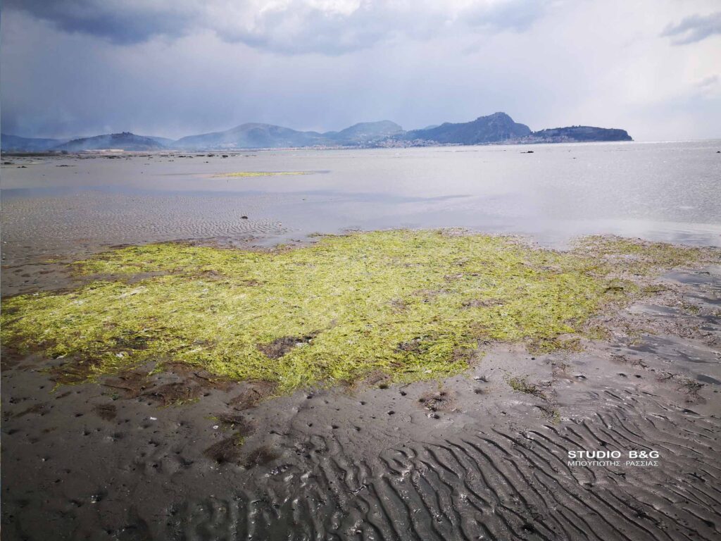 Η θάλασσα μπήκε μέσα από την πολύ μεγάλη άμπωτη στην παραλία μεταξύ του Ναυπλίου και της Νέας Κίου στην Αργολίδα, Δευτέρα 21 Μαρτίου 2022.