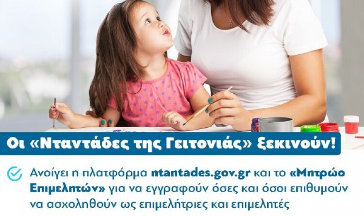 Ανοιξε η πλατφόρμα ntantades.gov.gr, προκειμένου να εγγραφούν όσοι και όσες επιθυμούν να απασχοληθούν ως επιμελητές και επιμελήτριες στο συγχρηματοδοτούμενο πρόγραμμα «Νταντάδες της Γειτονιάς», σύμφωνα με ανακοίνωση του υπουργείου Εργασίας και Κοινωνικών Υποθέσεων.