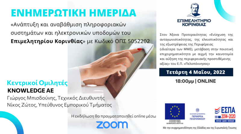 Online Εκδήλωση: Ανάπτυξη και αναβάθμιση πληροφοριακών συστημάτων και ηλεκτρονικών υποδομών Επιμελητηρίου Κορινθίας