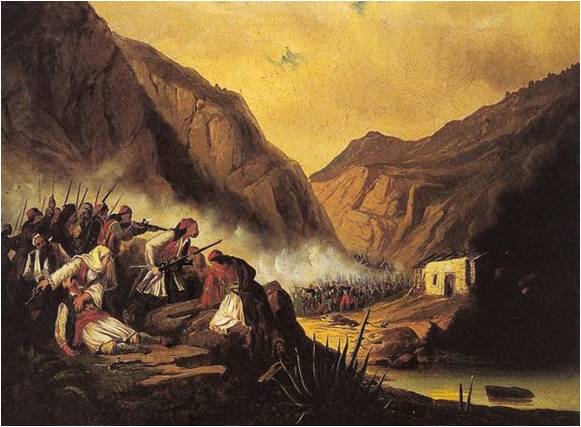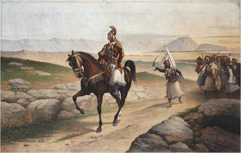 και παραπίσω οι Έλληνες με τα σπαθιά στα χέρια.