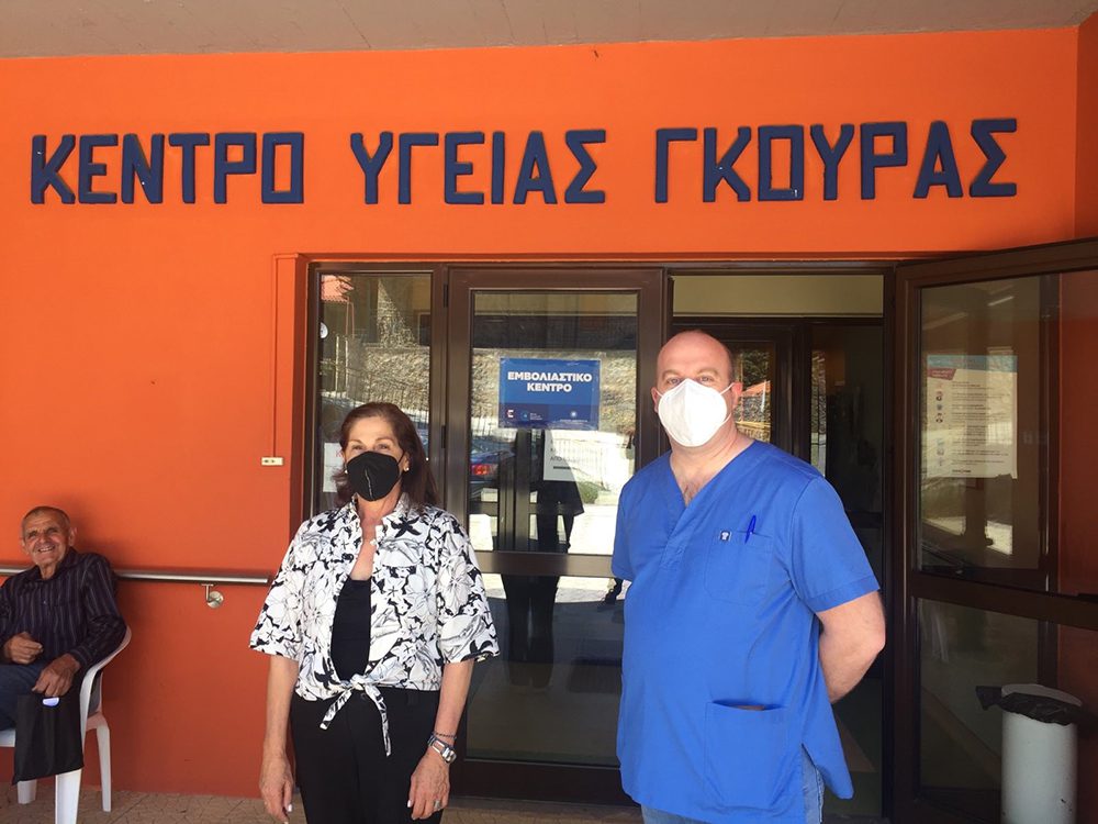 Ακολούθως, η αντιπεριφερειάρχης Κορινθίας επισκέφθηκε το Κέντρο Υγείας Γκούρας όπου εκ μέρους της Περιφέρειας Πελοποννήσου παρέδωσε υγειονομικό υλικό (συσκευασίες rapid test) στον υπεύθυνο του Κ.Υ. με τον οποίον συζήτησε θέματα που αφορούν στην λειτουργία του.