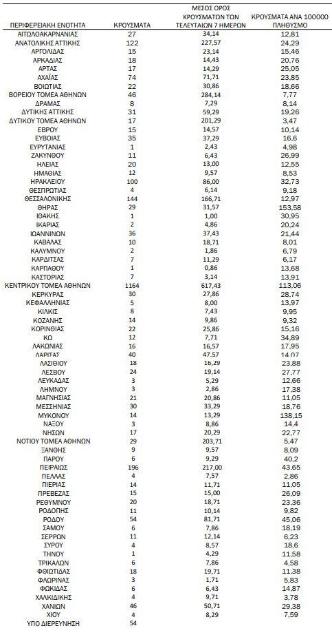 2.501 νέα κρούσματα, 10 θάνατοι, 119 διασωληνωμένοι – Γεωγραφική κατανομή