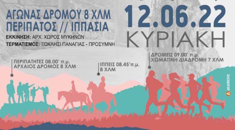 Την Κυριακή 12/6 θα διεξαχθεί ο 14ος Αρχαίος Μυκηναϊκός Δρόμος. Οι “πολύχρυσες” Μυκήνες αποτελούν έναν από τους σημαντικότερους αρχαιολογικούς τόπους παγκοσμίως. Η φιλόξενη Προσύμνη, μια περιοχή που είχε την τύχη να μη στερηθεί ποτέ το βήμα, τη φωνή, τον ιδρώτα, την αγάπη των ανθρώπων.