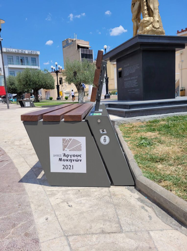 Δύο (2) έξυπνα παγκάκια τοποθετήθηκαν στην κεντρική πλατεία του Άργους έμπροσθεν του Παλαιού Δημαρχείου.
