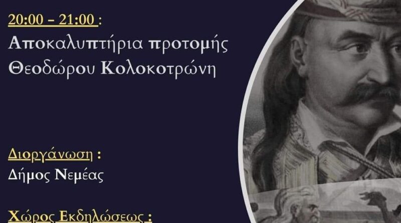 Νεμέα: Tελετή αποκαλυπτηρίων προτομής Θεοδώρου Κολοκοτρώνη στην Πλατεία Πατώκου