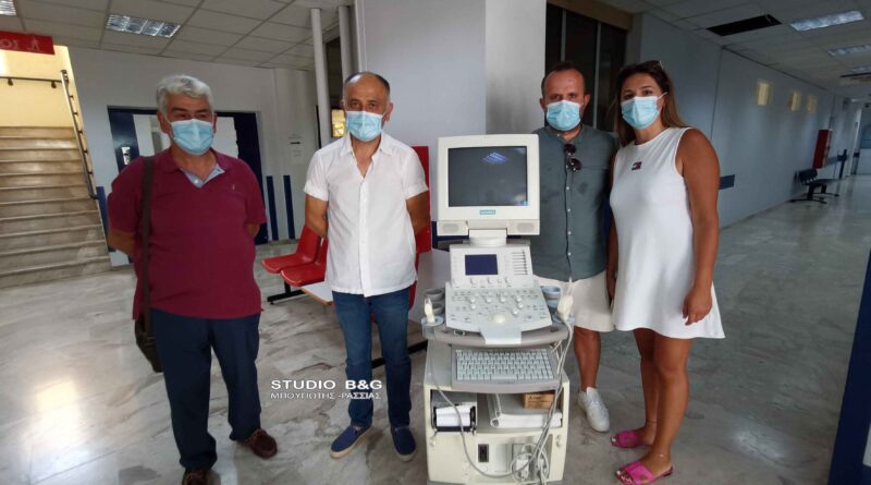Δυο νέοι άνθρωποι μόνιμοι κάτοικοι Γερμανίας που διατηρούν χρόνιους δεσμούς με την πόλη του Ναυπλίου καθώς έχουν και συγγενείς που ζουν εδώ, ο Thomas Ziu και η σύζυγός του Marinela Ruka καρδιολόγος σε Γερμανικό Νοσοκομείο, δώρισαν ένα σύγχρονο υπερηχογράφο Sonoline G50.