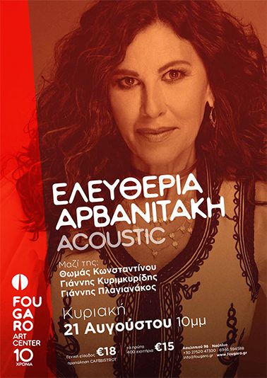 Το FOUGARO ARTCENTER, στο 4ο μεγάλο LIVE του φετινού καλοκαιριού, υποδέχεται την Ελευθερία Αρβανιτάκη την Κυριακή 21 Αυγούστου στις 10 μ.μ.