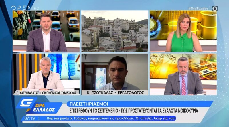 Έρχεται τσουνάμι πλειστηριασμών ακινήτων από Σεπτέμβριο για πολλούς δανειολήπτες, όπως ανέφερε μιλώντας στην εκπομπή Ώρα Ελλάδος στο OPEN ο εργατολόγος Κώστας Τσουκαλάς.