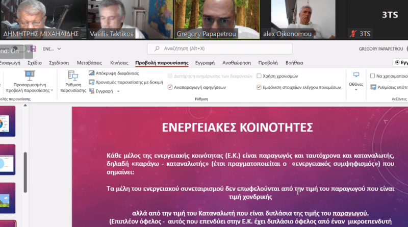 Πραγματοποιήθηκε στις 21/7/2022, διαδικτυακή συζήτηση από το Ινστιτούτο Μελετών Κοινωνικής Οικονομίας-ΙΝΜΕΚΟ για τις δυνατότητες που προσφέρουν οι «Ενεργειακές Κοινότητες» στους Έλληνες συμπολίτες, για την ενεργειακή αυτάρκεια.