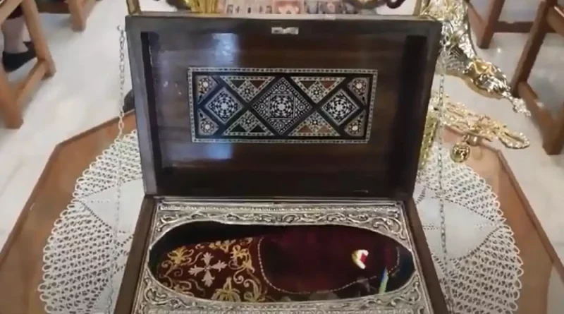 Η παντόφλα του Αγίου Σπυρίδωνα που έχει μεταφερθεί από την Κέρκυρα στο ναό όπου θα βρίσκεται για λίγες μέρες εκεί, έχει προκαλέσει κοσμοσυρροή με πιστούς να συναθροίζονται στο Ναό.