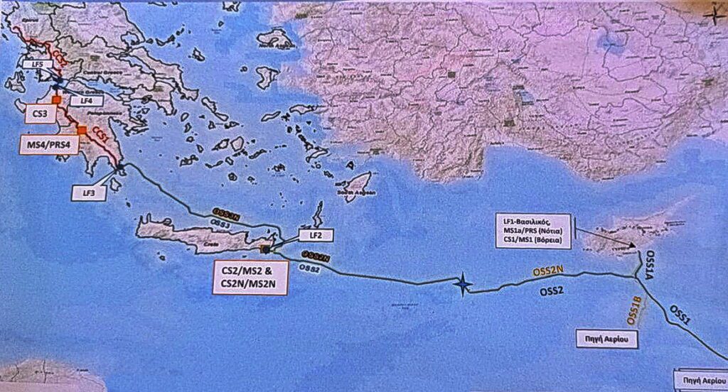 Στην ελληνική επικράτεια, συγκεκριμένα, πρόκειται να περάσει από την Κρήτη και την νοτιοανατολική Πελοπόννησο, στην συνέχεια θα διασχίσει για περίπου 600 χιλιόμετρα την ελληνική ηπειρωτική χώρα, για να φτάσει στην Ιταλία μέσω του υποθαλάσσιου τμήματος του αγωγού “Ποσειδών”, μήκους περίπου 210 χιλιομέτρων.
