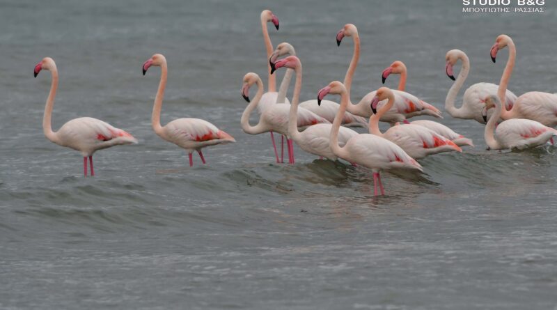 Είκοσι φλαμίνγκο στον Υδροβιότοπο του Ναυπλίου