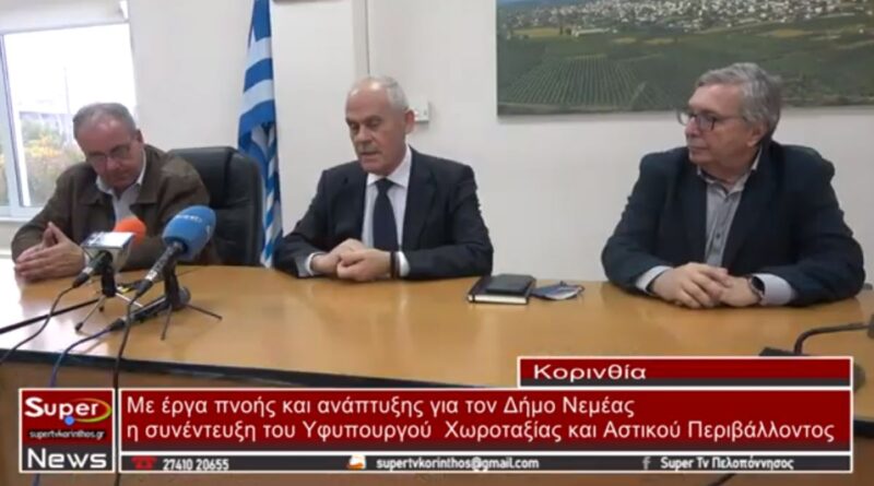 Από το Δημαρχείο της Νεμέας ο Υφυπουργός Χωροταξίας και Περιβάλλοντος Νίκος Ταγαράς ανακοίνωσε σημαντικά έργα που αφορούν τον Δήμο.