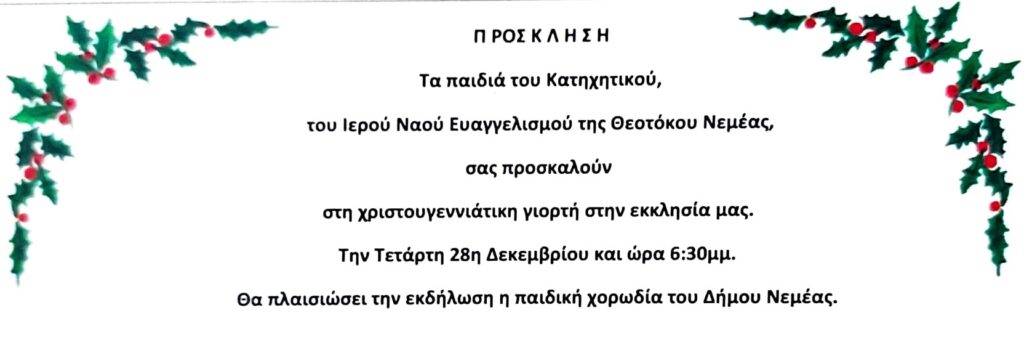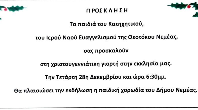 Γιορτή Κατηχητικού Ι. Ναού Ευαγγελισμού Θεοτόκου Νεμέας – Πρόσκληση