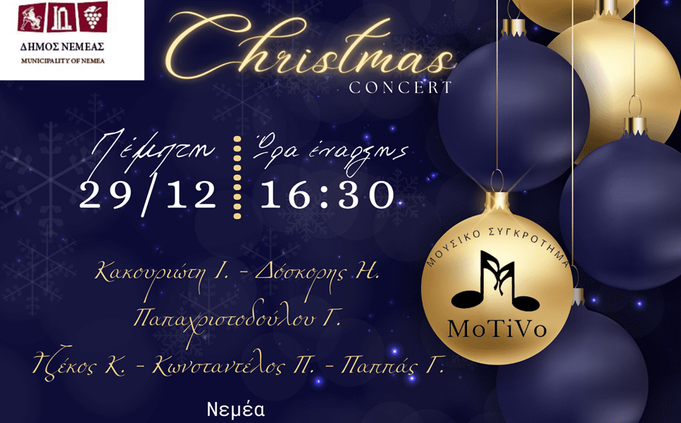 Νεμέα: Χριστουγεννιάτικη συναυλία – εκδήλωση την Πέμπτη 29 Δεκεμβρίου