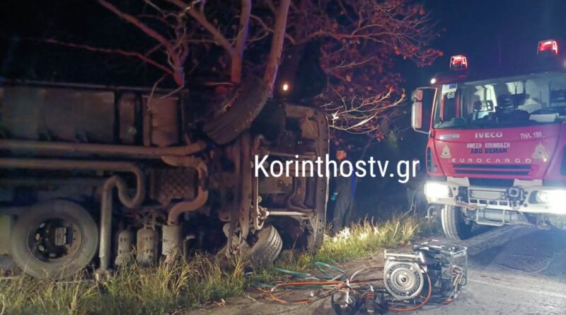 Δερβενάκια: Ανατροπή νταλίκας στην Κορίνθου – Άργους -Καλά στην υγεία του ο οδηγός -VIDEO