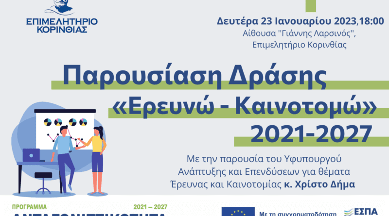 Πρόσκληση σε παρουσίαση της Δράσης ”Ερευνώ- Καινοτομώ 2021-2027”
