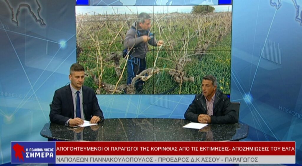 Ο Πρόεδρος της Δημοτικής Κοινότητας Άσσου και παραγωγός Ναπολέων Γιαννακουλόπουλος μέσα από την εκπομπή η Πελοπόννησος ΣΗΜΕΡΑ αναφέρθηκε στις εκτιμήσεις από τον ΕΛΓΑ αλλά και στους λόγους που οδηγούν τους αγρότες σε αδιέξοδο τονίζοντας πως οι κινητοποιήσεις πλέον είναι μονόδρομος.